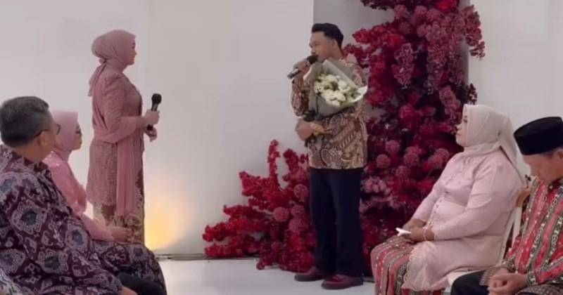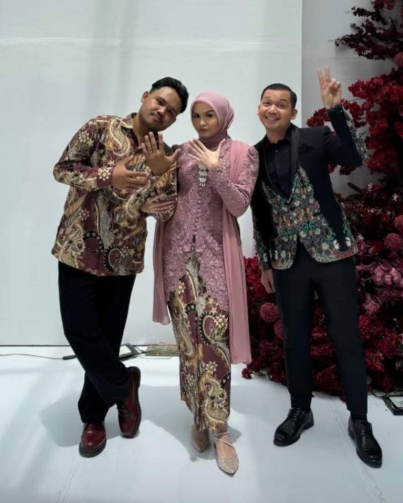 Karena lamaran identik dengan hal yang romantis, Salma dan Diman pun mengenakan batik couple. Mereka berdua mengenakan batik sarimbit.