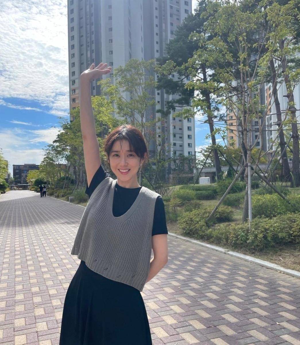Jang Nara memang terkenal dengan gayanya yang simpel, tapi rapi. Berkat tubuh ideal dan kulitnya yang putih, penampilan dengan kaos dan celana sederhana selalu terlihat pas. Untuk menambahkan kesan elegan, ia mengenakan vest abu-abu yang mempertegas penampilannya.