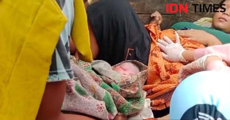 Setelah berhasil dievakuasi, ibu hamil ini melahirkan saat di perjalanan.
