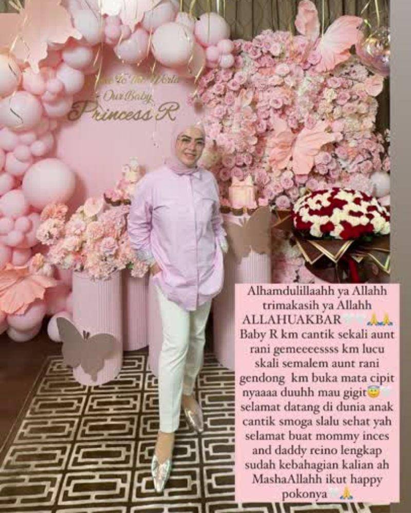 "Alhamdulillaahh ya Allahh terima kasih ya Allahh ALLAHUAKBAR. Baby R kamu cantik sekali, aunt Rani gemeeeessss kamu lucu sekali," tulis Aisyahrani.