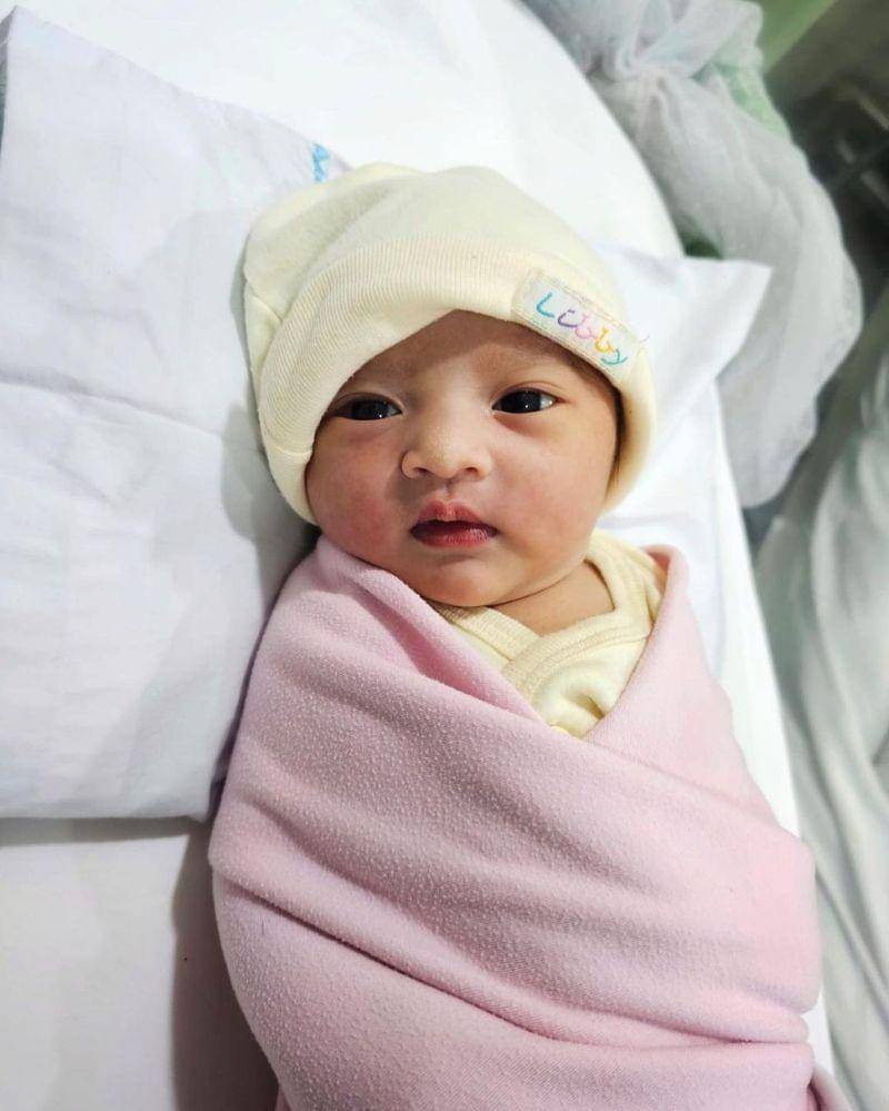 Dalam caption unggahannya, Sabrina juga mengungkapkan bahwa bayinya lahir dengan berat 3,2 kg dan panjang 49 cm.