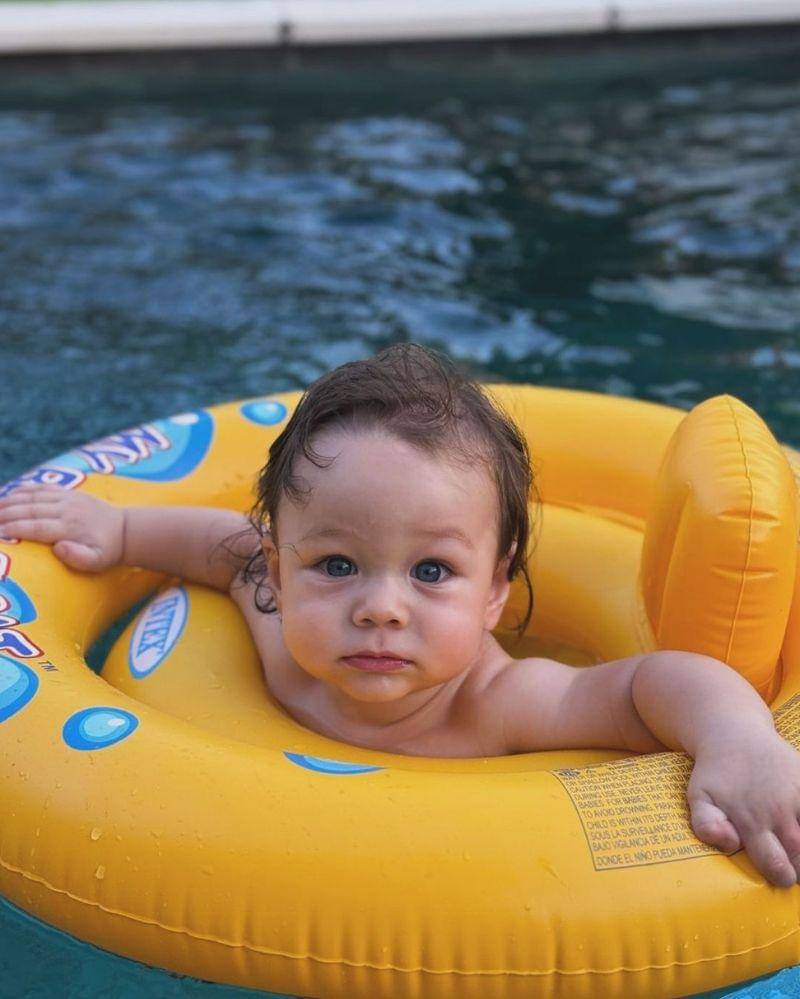 Ini dia foto Baby Noah, putra Stefan William dan Ria Andrews. Baby Noah memiliki rambut kecokelatan dan mata biru yang menggemaskan.