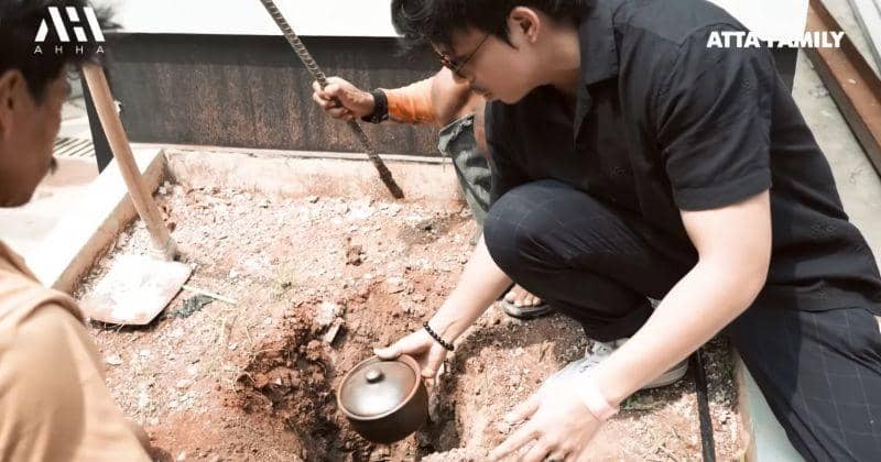 Dalam proses penguburan ari-ari itu, Atta tak sendirian. Ia dibantu oleh pekerja yang sedang menyempurnakan bangunan rumahnya. Selain itu, Atta juga mendatangkan ustaz untuk membantu doa.