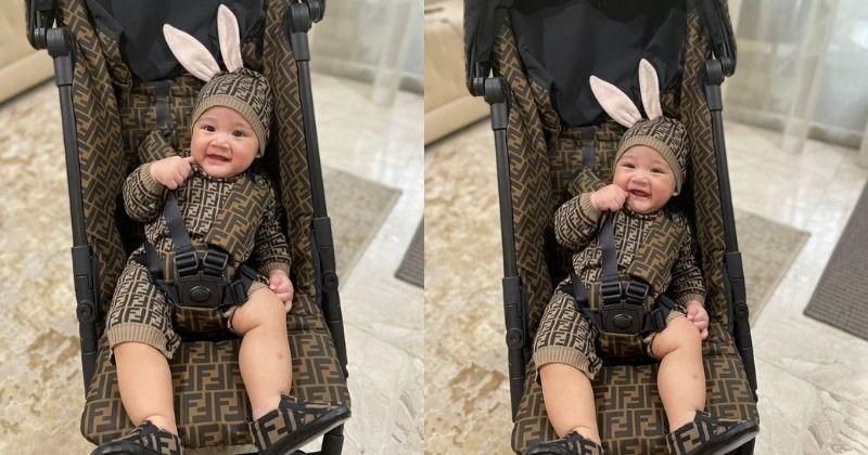 Selain karena anak artis, Rayyanza disorot karena tingkah lucunya, foto-fotonya, hingga perlengkapan bayinya. Seperti pada foto yang satu ini, Rayyanza tampak mengenakan outfit serba Fendi.