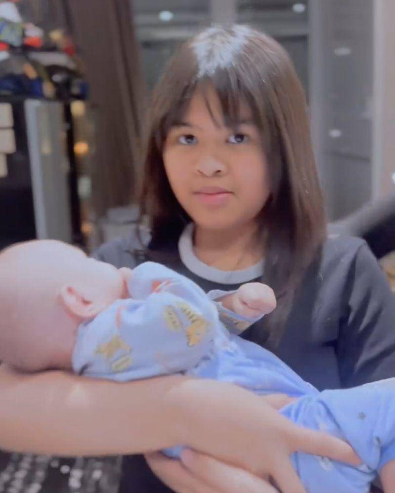 Dalam foto yang satu ini, Felicia menunjukkan kedekatan bersama adik angkatnya dengan menggendong Baby Senna.