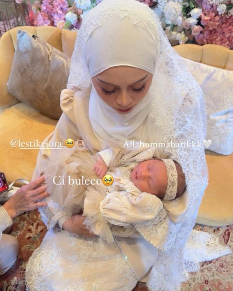 Lesti tampak begitu penuh kasih sayang saat menggendong putrinya yang tengah tertidur pulas. Momen ini mencerminkan kehangatan seorang ibu yang selalu ingin memberikan yang terbaik untuk anaknya. Kehadiran Leshia dalam acara akikah ini semakin menambah kebahagiaan bagi keluarga besar mereka.