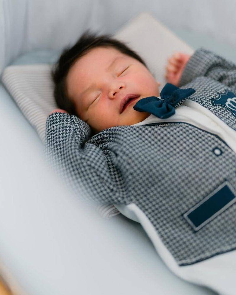Dalam foto tersebut, Baby Aflah tampak tertidur pulas dengan mengenakan setelan bernuansa biru, lengkap dengan dasi kupu-kupu. Rambutnya yang hitam tebal juga mencuri perhatian karena terlihat begitu lebat untuk bayi baru lahir.