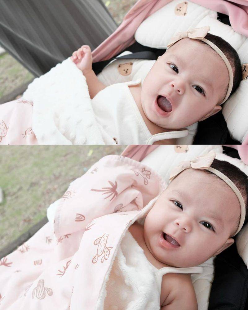 Di potret tersebut, Baby Alesha terlihat menggemaskan dengan senyum yang ceria. Super gemas!