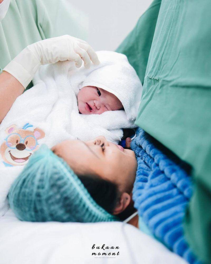 Dari foto yang dibagikan, Afifah melahirkan bayinya melalui persalinan caesar. Sang suami, Faldo Arsanda Aziz juga setia mendampingi Afifah selama proses persalinan.