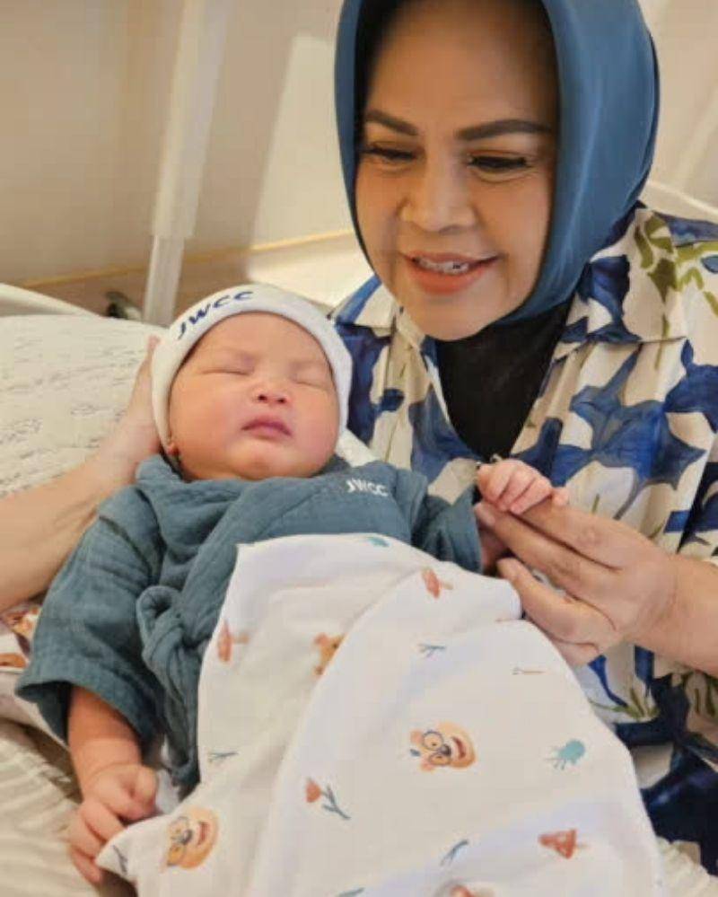 1. Foto Hetty Koes Endang menyambut kelahiran cucu kedua