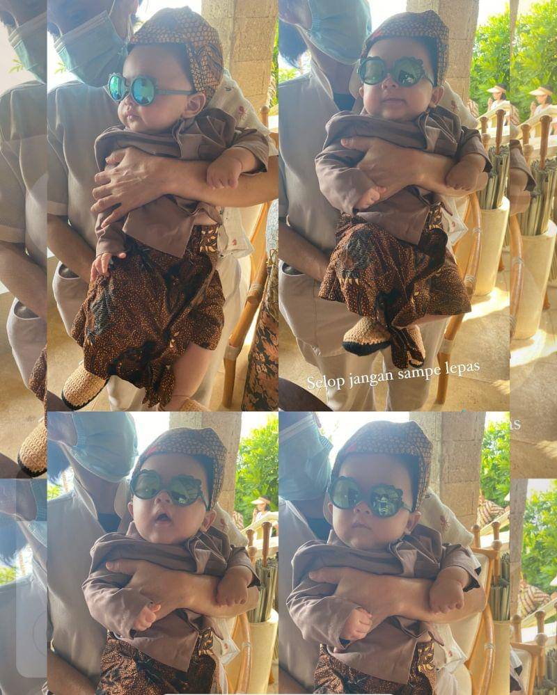 Seperti yang terlihat dalam Instagram Story sang Mama, Baby Rex tampak mengenakan baju adat Jawa berwarna cokelat, lengkap dengan bawahan kain. Bahkan, penampilan Baby Rex juga semakin lengkap dengan blangkon khas Jawa yang dipasangkan di kepala mungilnya.