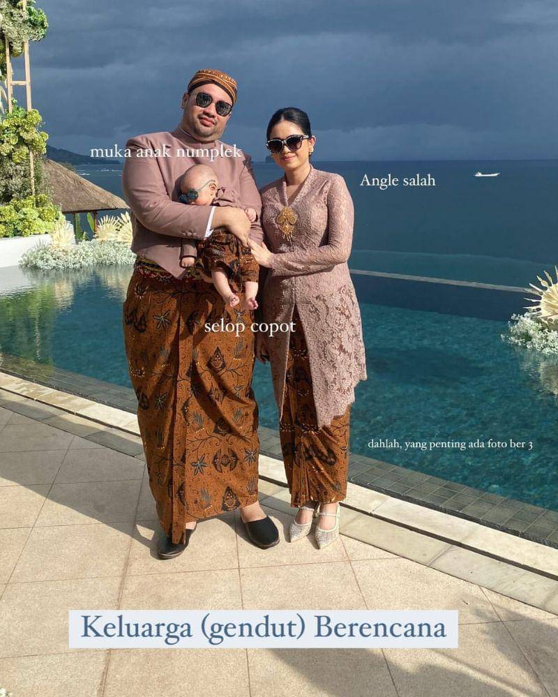 Tak lupa, Alam Persada dan Andamari mengajak putranya tersebut untuk foto bersama di pinggir kolam yang tampak menyatu dengan lautan. Dalam keterangan unggahannya tersebut, Andamari menyebut keluarga kecilnya sebagai “Keluarga (gendut) Berencana". Gemas sekali, ya, Ma!