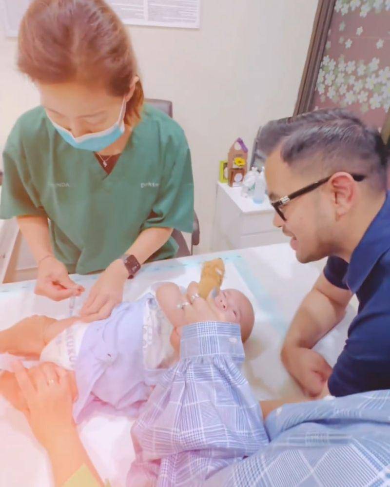 Disela-sela kesibukannya, Shandy dan Gilang tetap meluangkan waktu untuk Baby Senna, termasuk untuk mengantarnya mendapat vaksin.