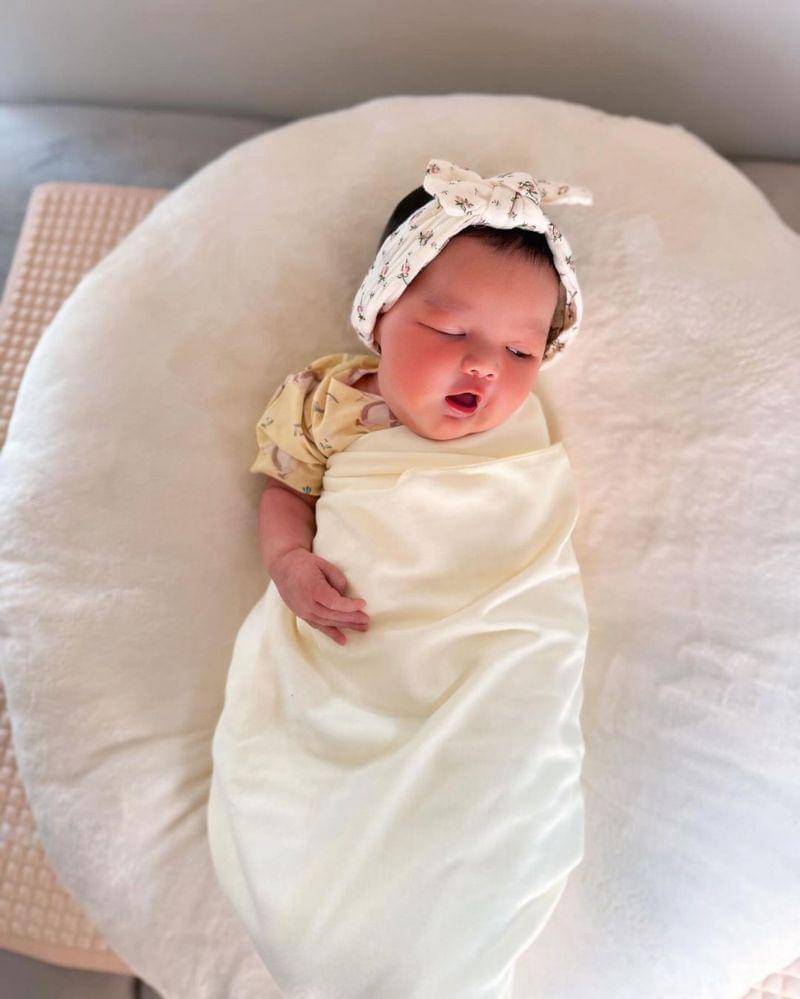 Kali ini ada foto Baby Zeya saat sedang terbangun. Baby Zeya tampak membuka matanya sambil menatap kamera saat difoto.