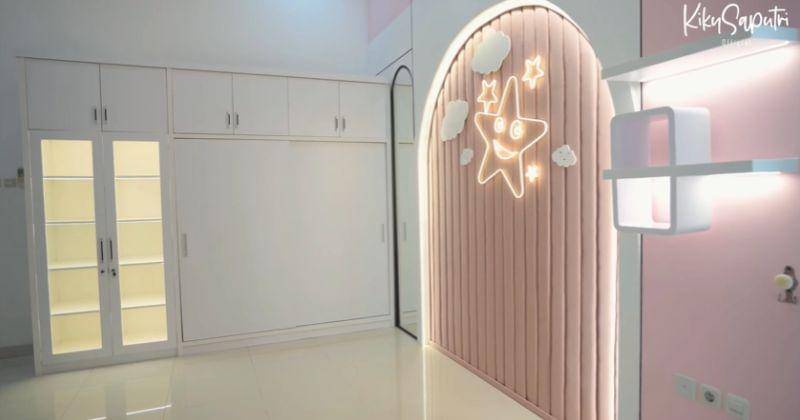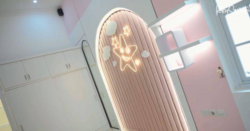Terdapat juga tambahan lampu LED berbentuk bintang dan beberapa elemen kecil lainnya yang memberikan kesan manis di kamar Baby Kayya.