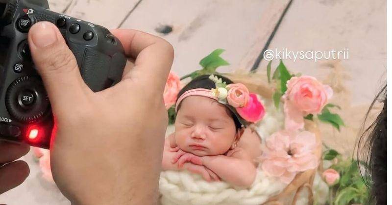 Tentu saja Kiky tak ingin melewatkan momen spesial kelahiran bayinya begitu saja. Kiky pun memanggil jasa fotografer newborn untuk mengabadikan potret Baby Kayya.