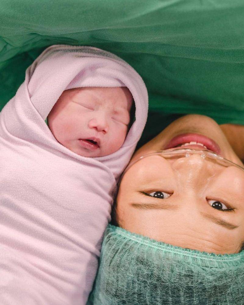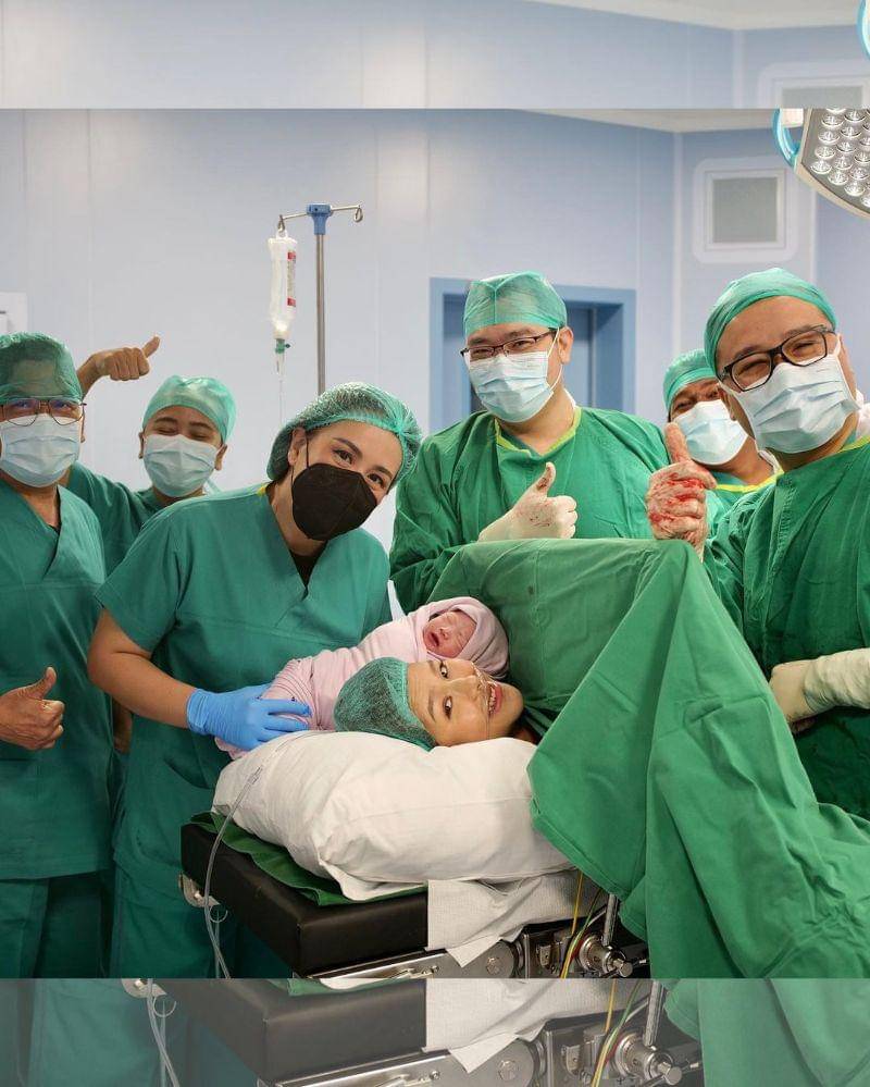 Pada salah satu foto yang dibagikan, terlihat momen saat Vienesca Laurencia masih berbaring usai melahirkan bayinya melalui operasi caesar. Sementara itu, bayinya yang baru lahir tampak menangis dalam balutan kain berwarna pink.