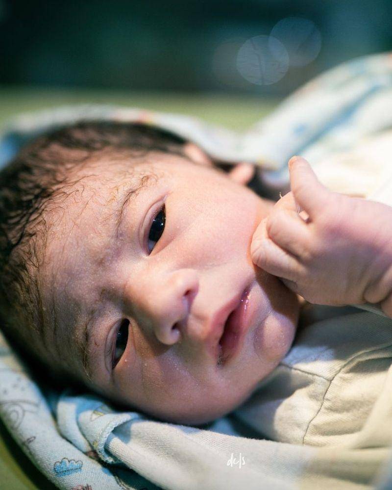 Pada foto tersebut, Wayan langsung memperlihatkan wajah putranya yang tampak sedang tertidur pulas. Tak lupa, sang bayi juga dibalut dengan kain bedong untuk menjaga tubuhnya tetap hangat.