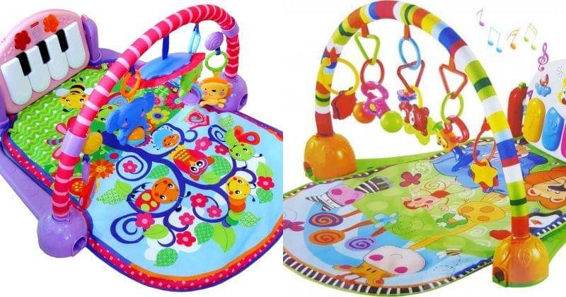 Serupa dengan mainan gantung, baby playgym ini juga berada di atas bayi. Bedanya, posisi mainan yang digantung di playgym dekat dengan dengan bayi. Warna-warni mainan yang digantung akan menarik untuk diraih, sehingga ia bisa melatih gerakan tangannya.