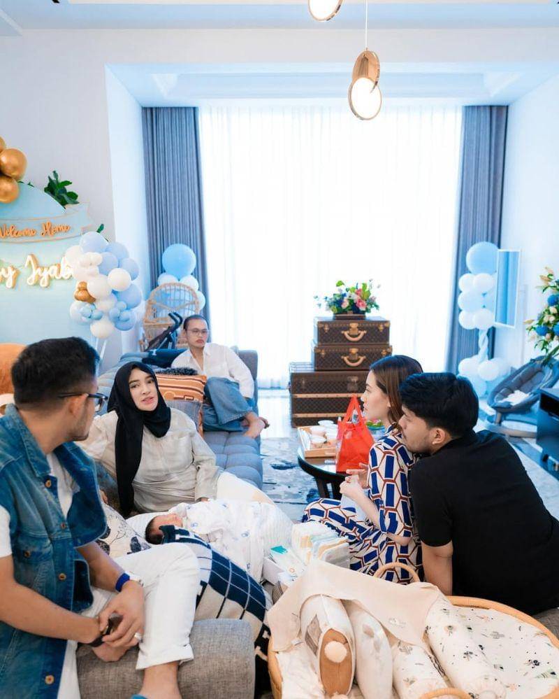 Kelahiran Baby Jyab pun memberi kebahagiaan untuk keluarga dan juga sahabat terdekat. Sederet rekan artis ini juga menjenguk Baby Jyab, termasuk pasangan Aaliyah Massaid dan Thariq Halilintar.