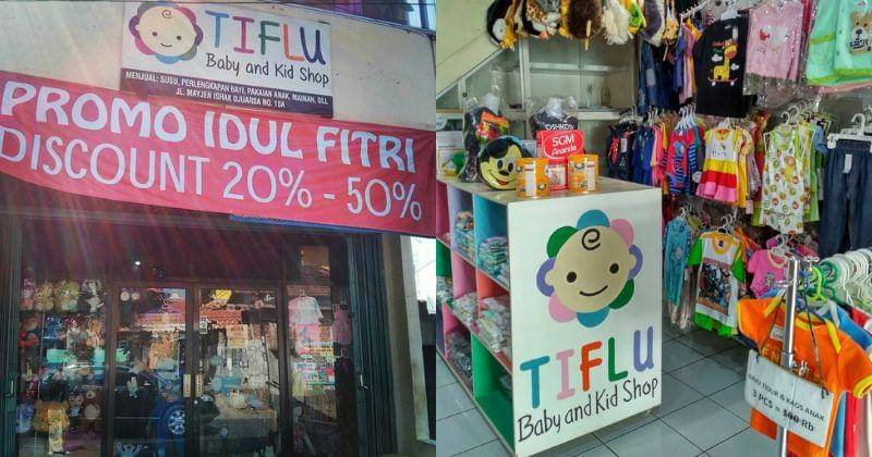 Terakhir ada Tiflu Baby and Kid Shop yang berlokasi di Jl. Mayjen Ishak Djuarsa. Di toko ini, Mama akan menemukan banyak perlengkapan bayi seperti baju, popok, sepatu, perlengkapan makan, hingga mainan.
