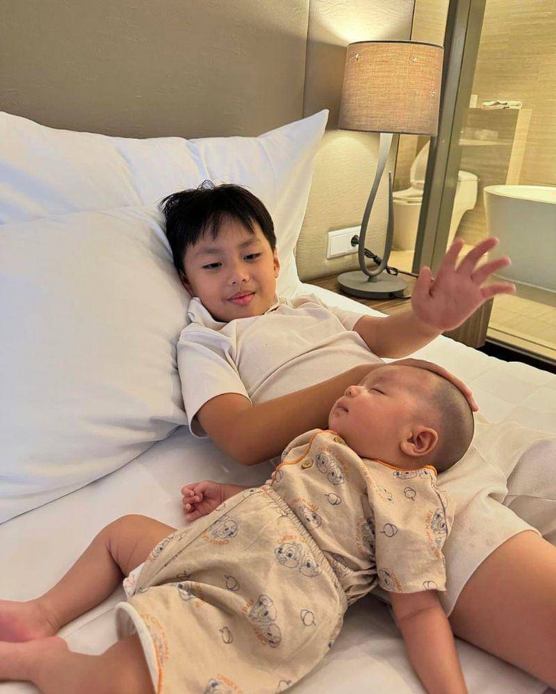 Kedua buah hati Larissa ini memang terlihat sangat akrab. Bahkan, dalam potret yang satu ini, Yusuf membiarkan sang adik tertidur pulas di pangkuannya.