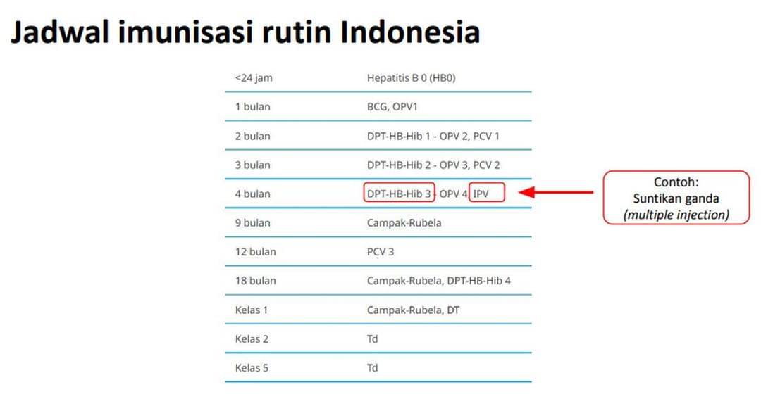Mengutip dari laman WHO, jadwal vaksinasi yang melibatkan beberapa suntikan dalam kunjungan yang sama didasarkan pada data keamanan dan efektivitas pra-lisensi dan pasca-lisensi selama bertahun-tahun. Termasuk studi penggunaan secara bersamaan.