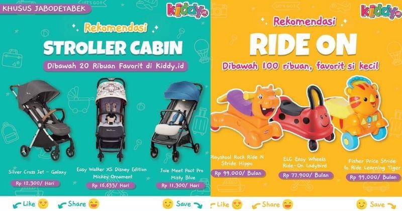 Produk yang disewakan di Kiddy.id sangat beragam, seperti stroller, mainan, breastpump, baby carrier, dan masih banyak lagi. Selain itu, Kiddy.is juga sering melakukan live shopping untuk barang-barang preloved yang mungkin Mama butuhkan.