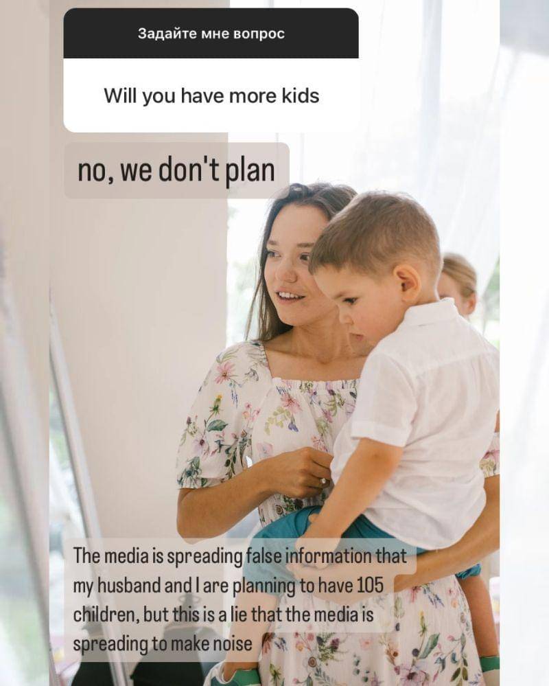 "Tidak, kami tidak berencana. Media menyebarkan informasi tidak benar bahwa aku dan suami berencana memiliki 105 anak. Itu tidak benar, media hanya membuat ramai," tulis Kristina Ozturk.