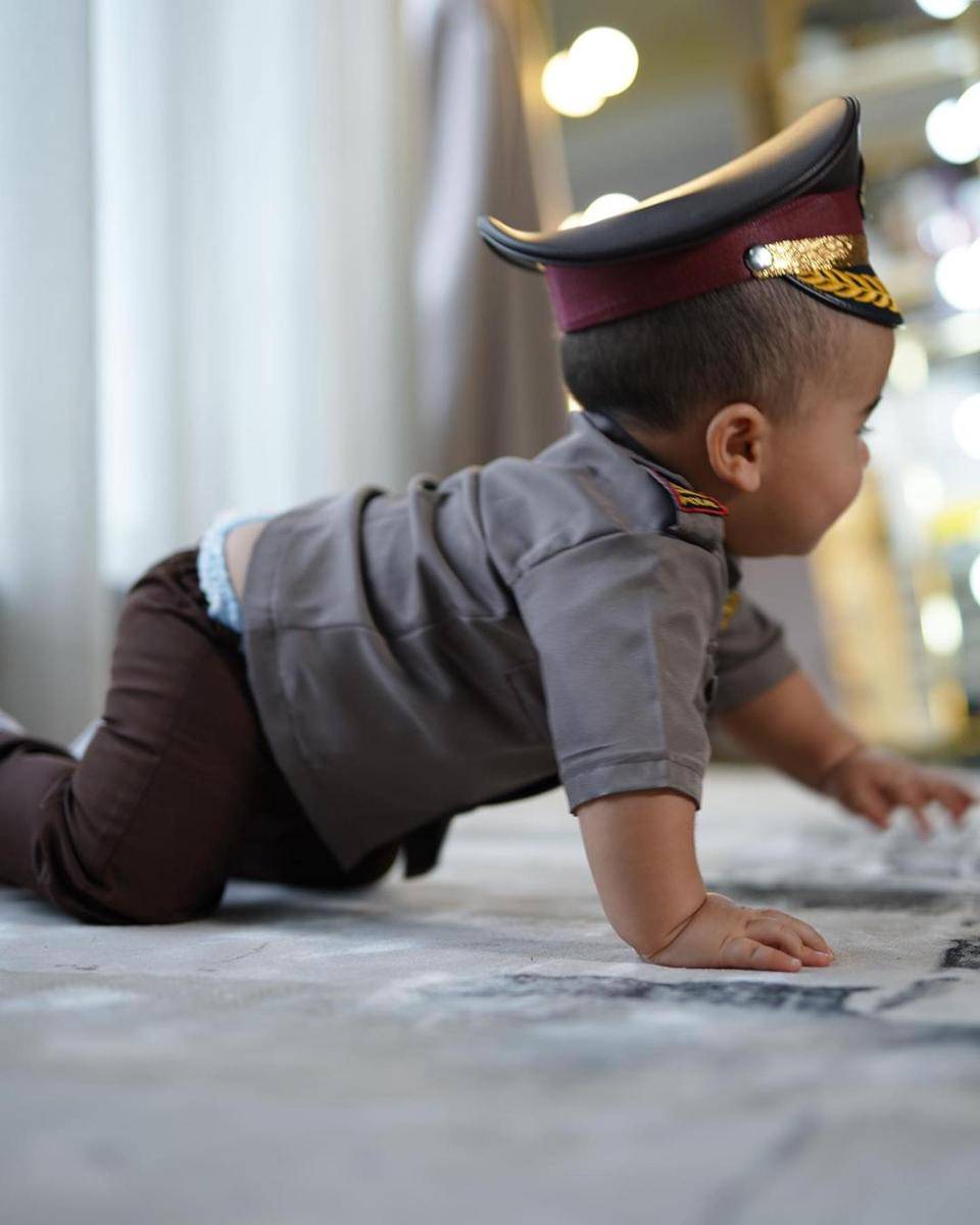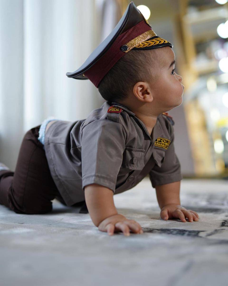 Dalam foto yang dibagikan Tasya itu, anak keduanya, Isa tampak sedang aktif untuk merangkak. Mengenakan kostum polisi dari atas sampai bawah, Isa bukannya 'seram' malah sangat menggemaskan.