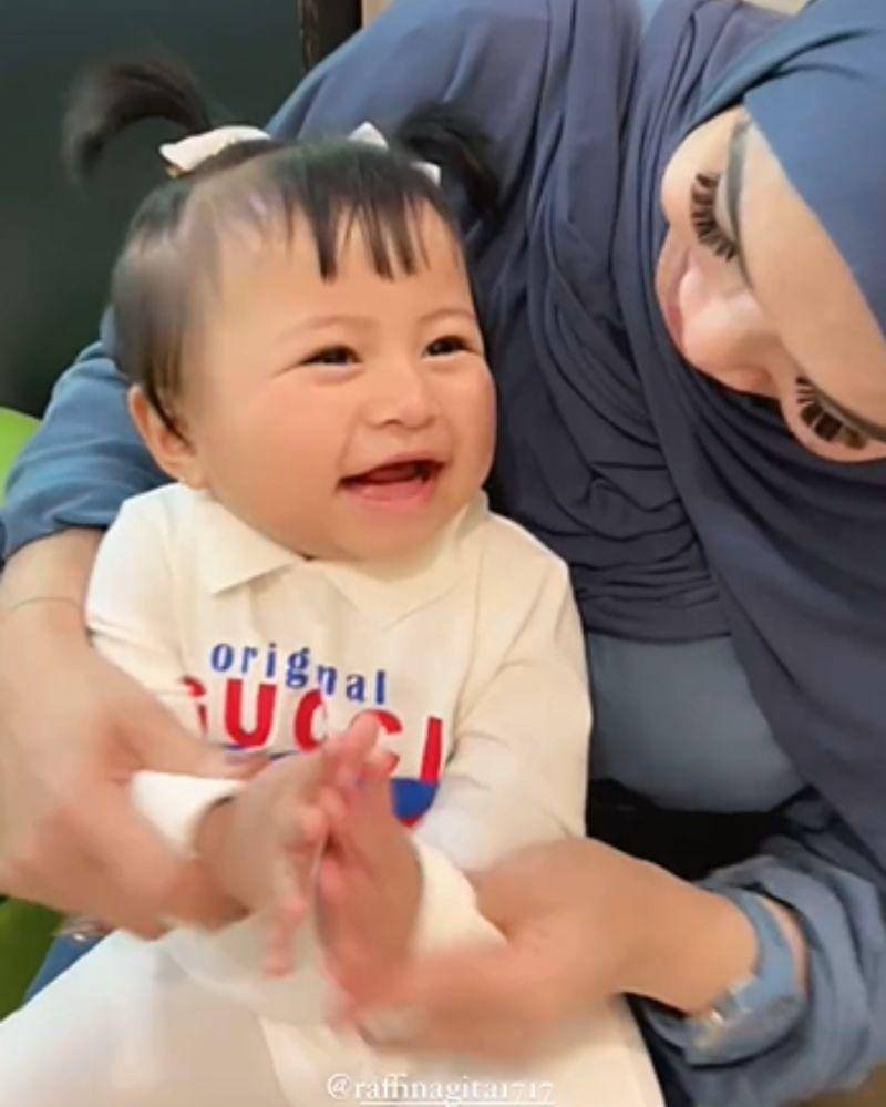 Bayi bernama lengkap Ranayma Malika Raudia Andara ini tampak menunjukkan senyumnya yang manis dan super gemas.