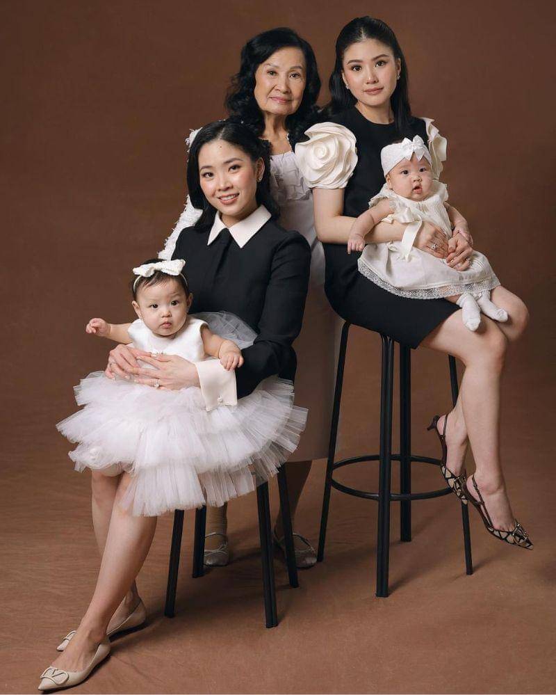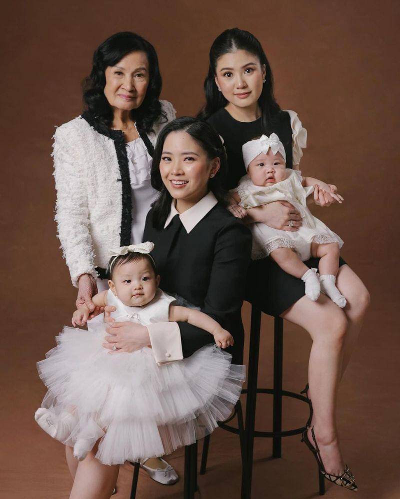 Valencia Tanoe dan Jessica Tanoe yang mengenakan busana bernuansa hitam tampak memangku putrinya masing-masing. Sementara itu, Quita Andreani Wibisono tampak berdiri di tengah dalam balutan dress berwarna putih.