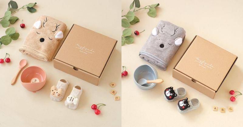Dalam satu paket hampers, terdiri dari 1 handuk karakter, 1 kaus kaki, 1 mangkuk, dan 1 sendok. Masing-masing perlengkapan bayi ini memiliki desain yang lucu untuk si Kecil.