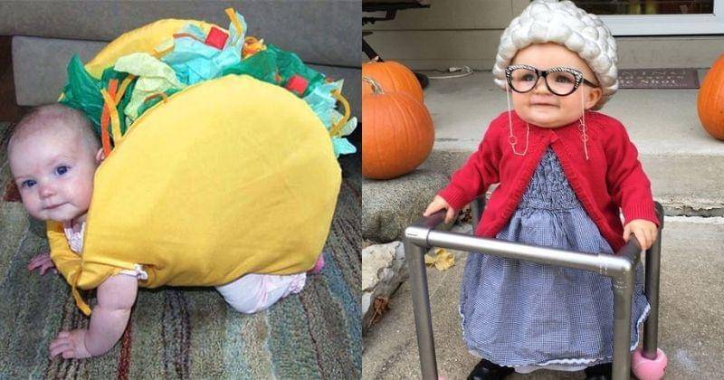 Misalnya seperti kostum di atas yang menampilkan kostum bayi yang berbentuk seperti taco. Sementara di sebelahnya ada bayi gemas yang cosplay menjadi grandma.