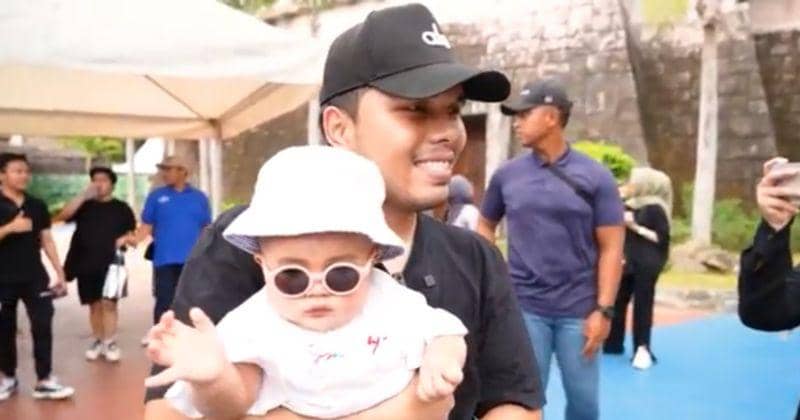 Anak keempat dari Gen Halilintar ini tampak menggendong Azura sambil menunjukkan ekspresi bahagia.