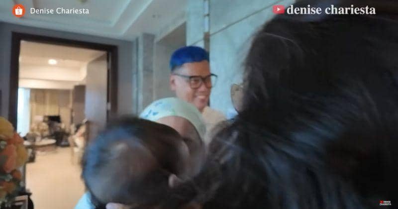 Meski begitu Jaden tetap anteng di gendongan Denise Chariesta. Ia memindai dan mengamati banyak orang saat masuk ke rumah Uya. Ada crew hingga asisten rumah tangga di sana, Jaden tidak tampak takut.