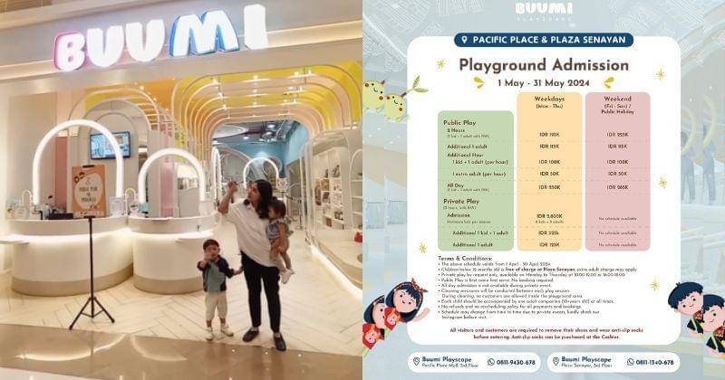 Rekomendasi pertama playground yang gratis untuk bayi di bawah satu tahun adalah adalah Buumi Playscape yang berlokasi di Plaza Senayan. Untuk pendamping akan dikenakan biaya sesuai dengan ketentuan yang berlaku.