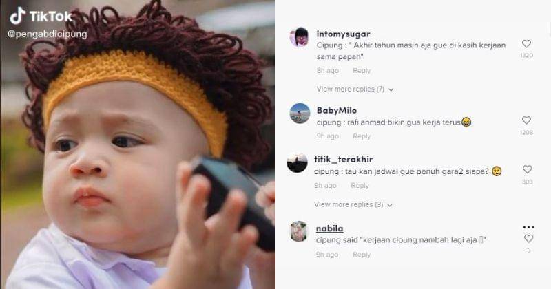 "Cipung: Raffi Ahmad bikin gua kerja terus," tulis pemilik akun @BabyMilo.