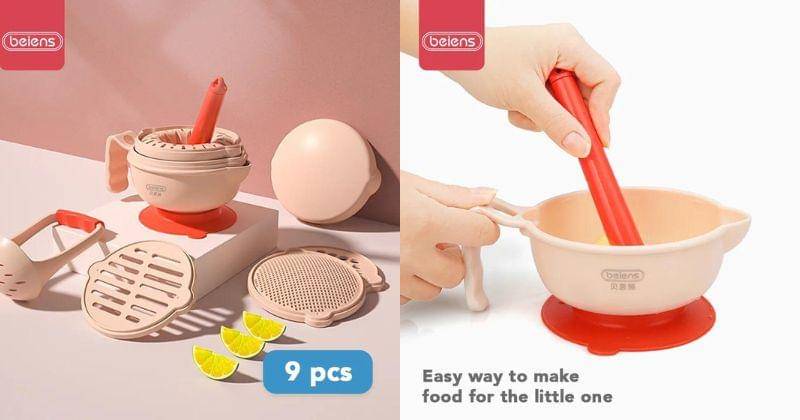 Jika Mama mencari set grinder bowl yang multifungsi, Mama bisa mempertimbangkan Beiens Baby Food Grinder Bowl. Satu set alat ini dapat membuat jus, menggiling, dan menyaring MPASI.
