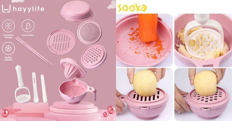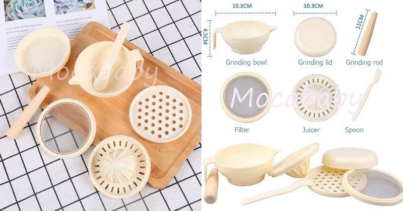 Hayylife Baby Food Maker Grinding Bowl juga menjadi salah satu yang bisa Mama pilih untuk menyiapkan MPASI si Kecil. Satu set alat ini terdiri dari grinder, mangkuk, perasan, parutan, saringan, sendok, dan penumbuk.