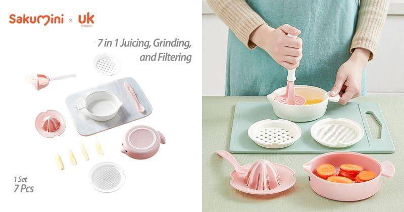 Sakumini Food Grinder Bowl Set juga bisa menjadi pertimbangan apabila Mama mencari grinder bowl yang multifungsi. Satu set grinder bowl dari Sakumini ini terdiri dari spoon, grinding rod, grinding cap, filter, grinding plate, juicer, dan grinding bowl.