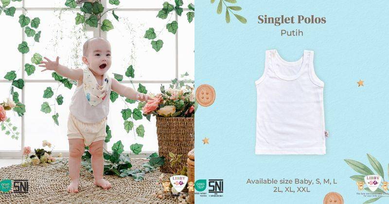 Merek Libby Baby juga bisa menjadi alternatif bagi Mama yang sedang mencari kaus dalam untuk bayi. Kaus dalam ini hanya dibanderol dengan harga belasan ribu dengan kualitas yang tak kalah bagus.