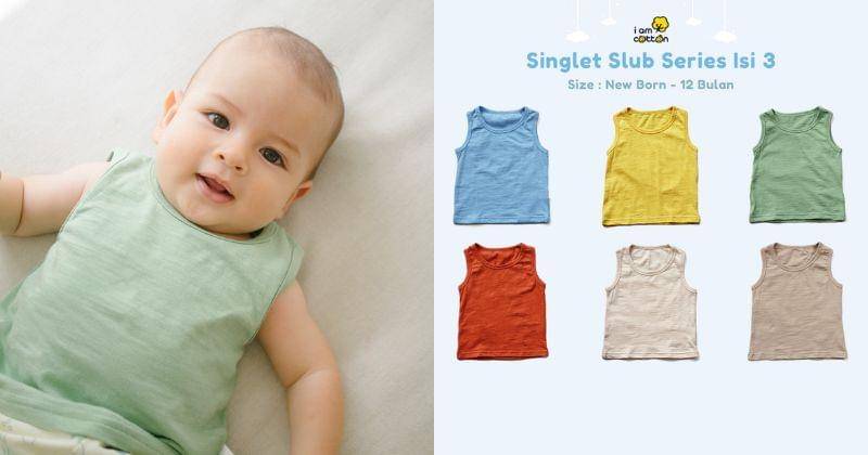 I am Cotton Singlet Slub Series merupakan kaus dalam bayi dengan pilihan warna-warna yang cerah. Mama tidak perlu khawatir karena kaus dalam ini tidak menggunakan pewarna berbahaya dan tidak menyebabkan alergi pada kulit si Kecil.