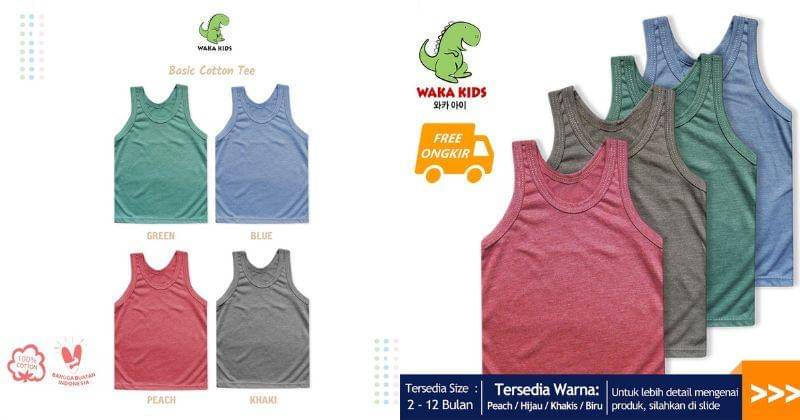 Kaus dalam ini tersedia dalam empat pilihan warna (peach, biru, hijau, dan abu-abu) dan lima pilihan ukuran (S, M, L, XL, dan XXL). Mama bisa membeli kaus dalam dari Wakakids di e-commerce dengan harga yang cukup terjangkau, yakni Rp 16.000 - Rp 17.000.