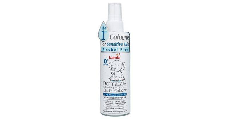 Bambi Dermacare Refreshing Pure Water Eau De Cologne merupakan pewangi yang diformulasikan khusus untuk bayi yang memiliki kulit sangat sensitif. Baby cologne ini diformulasikan 100% water based dan bebas alkohol sehingga aman untuk bayi yang menderita kulit kering, gatal, dan sensitif.