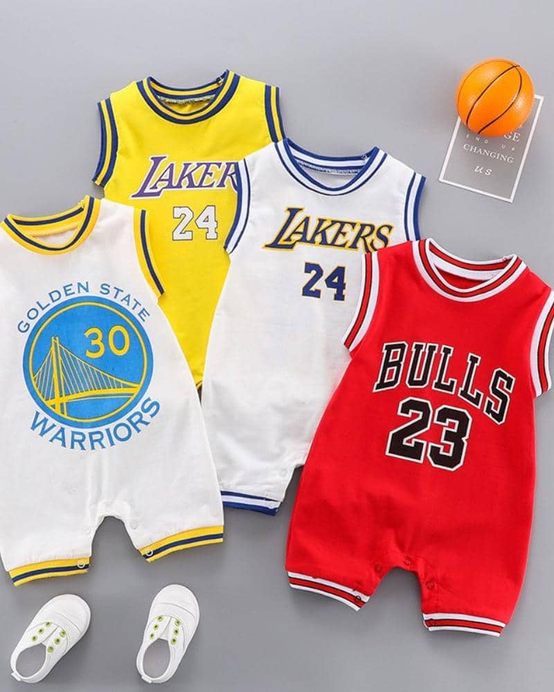 Playsuit atau romper terakhir yang dapat Mama pilih bermotif jersey basket klub. Cocok untuk dipakai saat menonton pertandingan basket bersama Papa, nih!