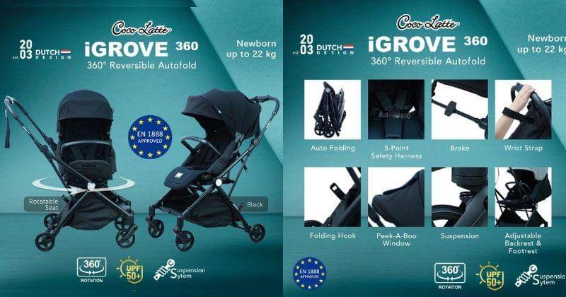 Jika Mama mencari stroller yang bisa dilipat otomatis sekaligus memiliki fitur reversible, maka Cocolatte IGrove 360° Reversible Autofold Stroller bisa menjadi pertimbangan. Jadi, selain bisa dilipat otomatis, kursi stroller ini juga dapat berputar 360°.