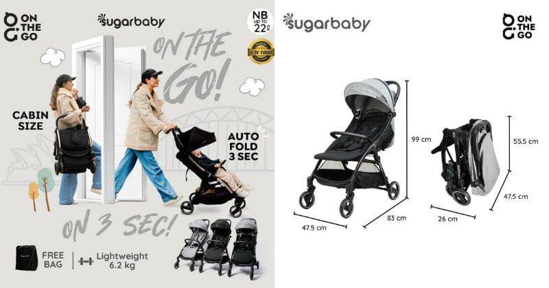 Hadir dengan teknologi Auto Fold Single-Handedly, membuat Sugarbaby Stroller On The Go mudah dibuka hanya dalam waktu tiga detik. Seperti namanya, stroller ini sangat cocok dibawa bepergian karena memiliki ukuran cabin size dan cukup ringan, yakni hanya 6,2 kg.