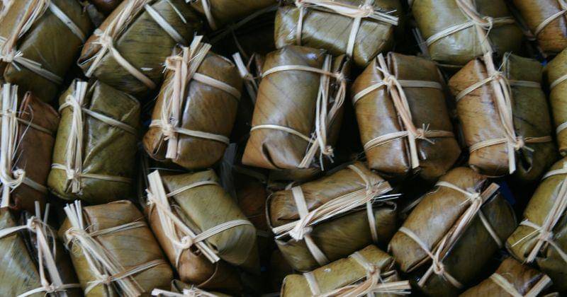 - Campurkan semua bahan hingga rata, lalu bungkus dengan daun pisang.