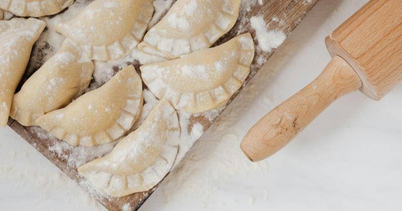 - Masukkan keju mozarella di tengah adonan pertama, kemudian lipat adonan membentuk setengah lingkaran dan rapatkan pinggirannya.